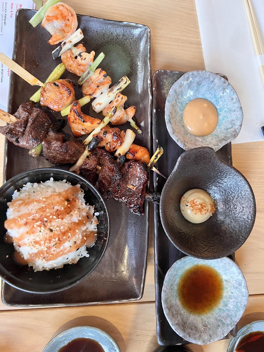 Beyond sushi, the kitchen delivers plenty of warm, satisfying dishes. The ramen egg is a small detail that makes a big impression-rich, perfectly cooked, and clearly prepared with care. Yakitori brings smoky, grilled depth to the table and works just as well as a shared plate or a main attraction. Crab & pork dumplings round things out with a comforting balance of savory filling and delicate wrappers, making them an easy favorite for first-time visitors and regulars alike.